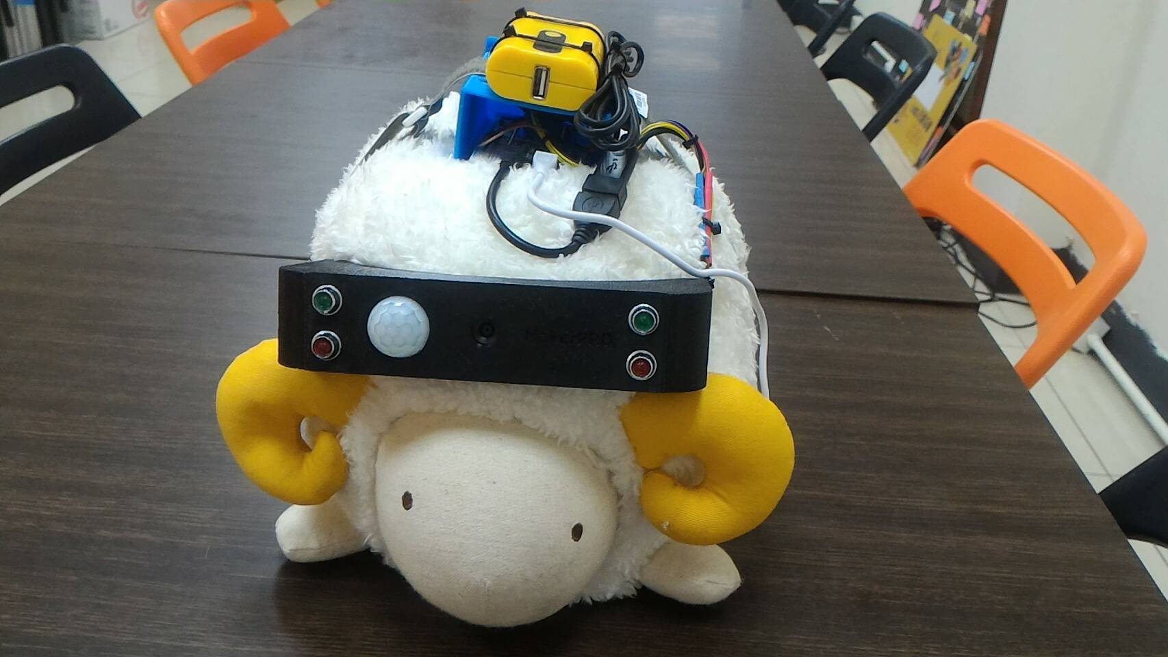 使用Linklt Smart 7688 Duo搭配網路攝影機、LED、蜂鳴器、人體紅外線感測器,做出一個簡易的居家監控系統,並將特製外殼裝置在娃娃上,來達到居家監控的效果,或是運用在其他創新玩法上,如:123木頭人。